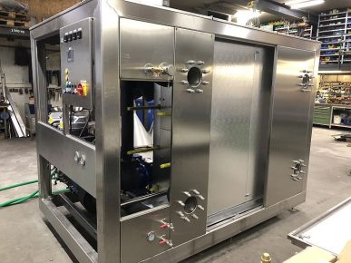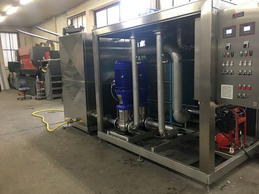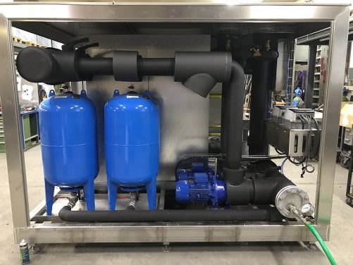Sehr häufig werden 2-kreisige Hydronik-Module in der Lebensmittelindustrie und im Weinbau eingesetzt. Hier befindet sich im Primärkreis der Kühlanlage meist ein Wasser-Glycol-gemisch. Eine unbemerkte Kontamination mit dem Produkt kann zu möglichen Gesundheitsschäden führen. Stattdessen wird das Produkt In einem 2. Kreislauf – dem Sekundärkreis- gekühlt. In diesem Sekundärkreis kommt Wasser zum Einsatz. Eine mögliche unbemerkte Kontamination mit Wasser würde zwar die Qualität des Produktes beeinflussen, würde aber nicht zu Gesundheitsschäden führen.